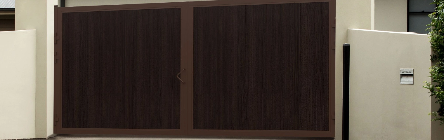 Для изготовления уличных распашных ворот используются панели «сэндвич», окантованные алюминиевыми экструдированными профилями высокой жесткости, покрытыми порошковой краской, которая исключает выгорание на солнце. Все узлы, детали и элементы ограждений износостойкие и оцинкованные, что гарантирует их прочность, надежность и продолжительный ресурс работы. В базовый комплект воротных систем данного вида входят створки разной или одинаковой ширины, которые при открытии распахиваются наружу или внутрь огражденных территорий.